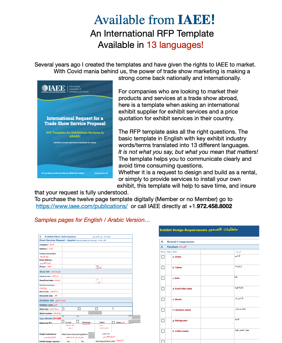 Jan 18 2018 RFP Template for International Suppliers Communicate what you mean more clearly when requesting international exhibit services Share this: Click to share on X (Opens in new window) X Click to share on Facebook (Opens in new window) Facebook Like Loading... Related